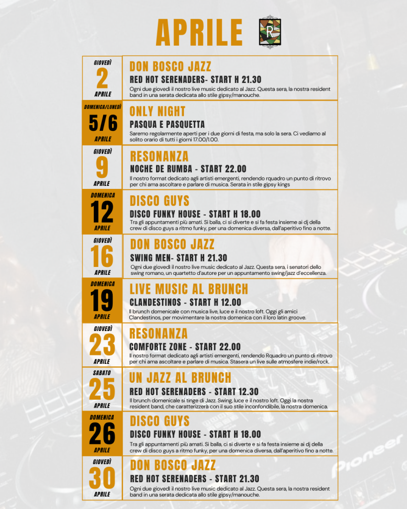 Organizziamo eventi live e dj set spaziando tra vari generi musicali: rock, jazz, blues, indie, r&b, funk, e house.